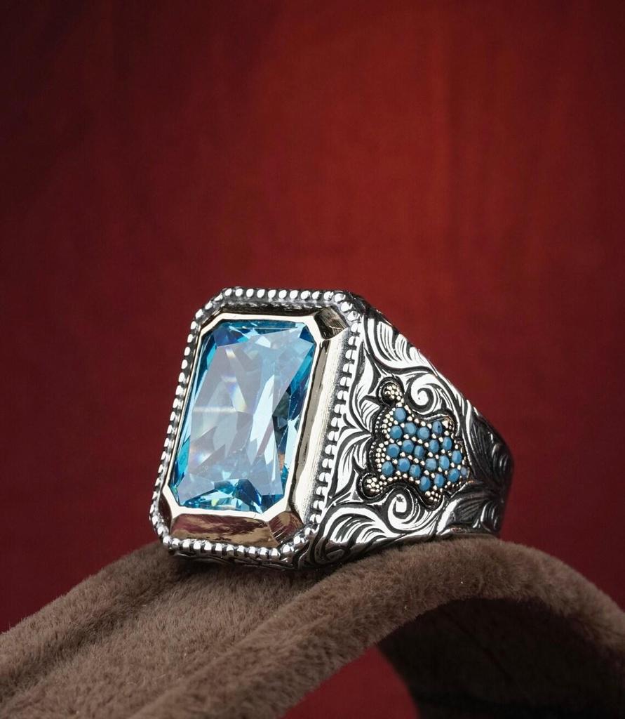 Кольцо Hecheng в этническом стиле в стиле ретро с инкрустацией цирконием цвета морской волны