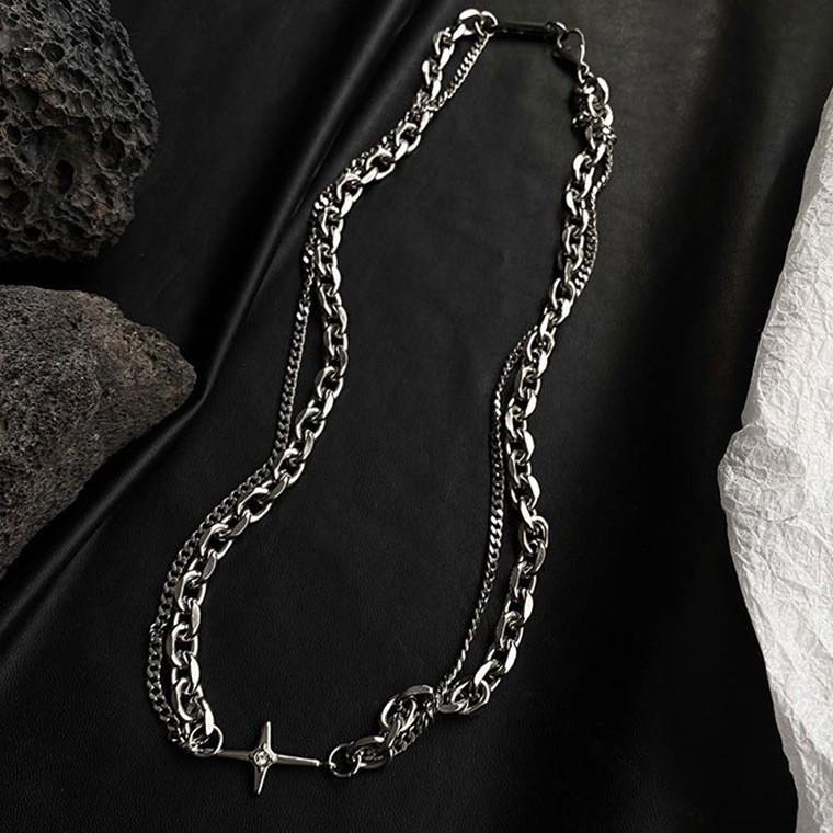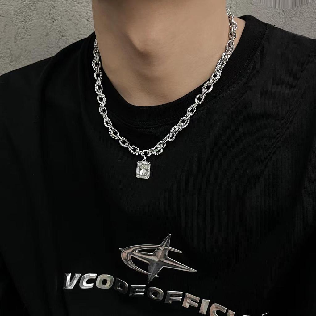 Унисекс, европейский и американский хип-хоп, двухслойное ожерелье с подвеской из титановой стали и циркония, цепочка на ключицу в холодном стиле