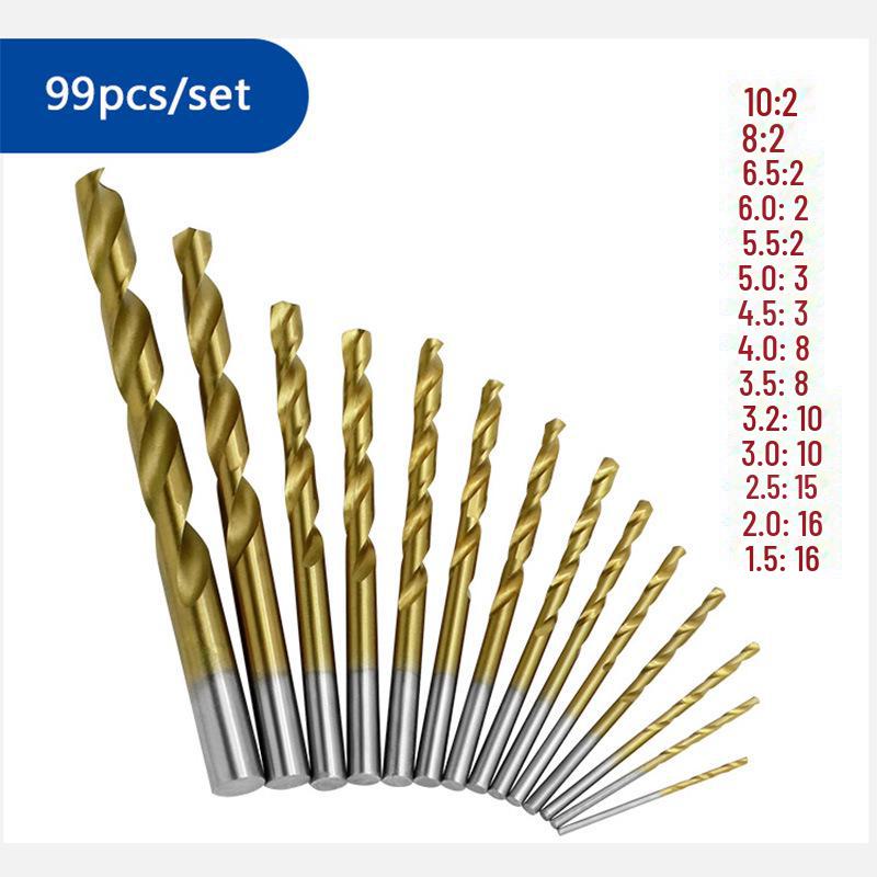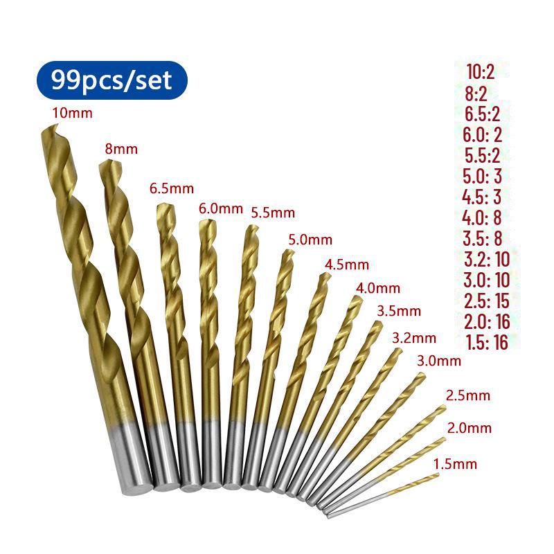 50 шт. титановых спиральных сверл из быстрорежущей стали, 1,0–3,0 мм, круглый хвостовик