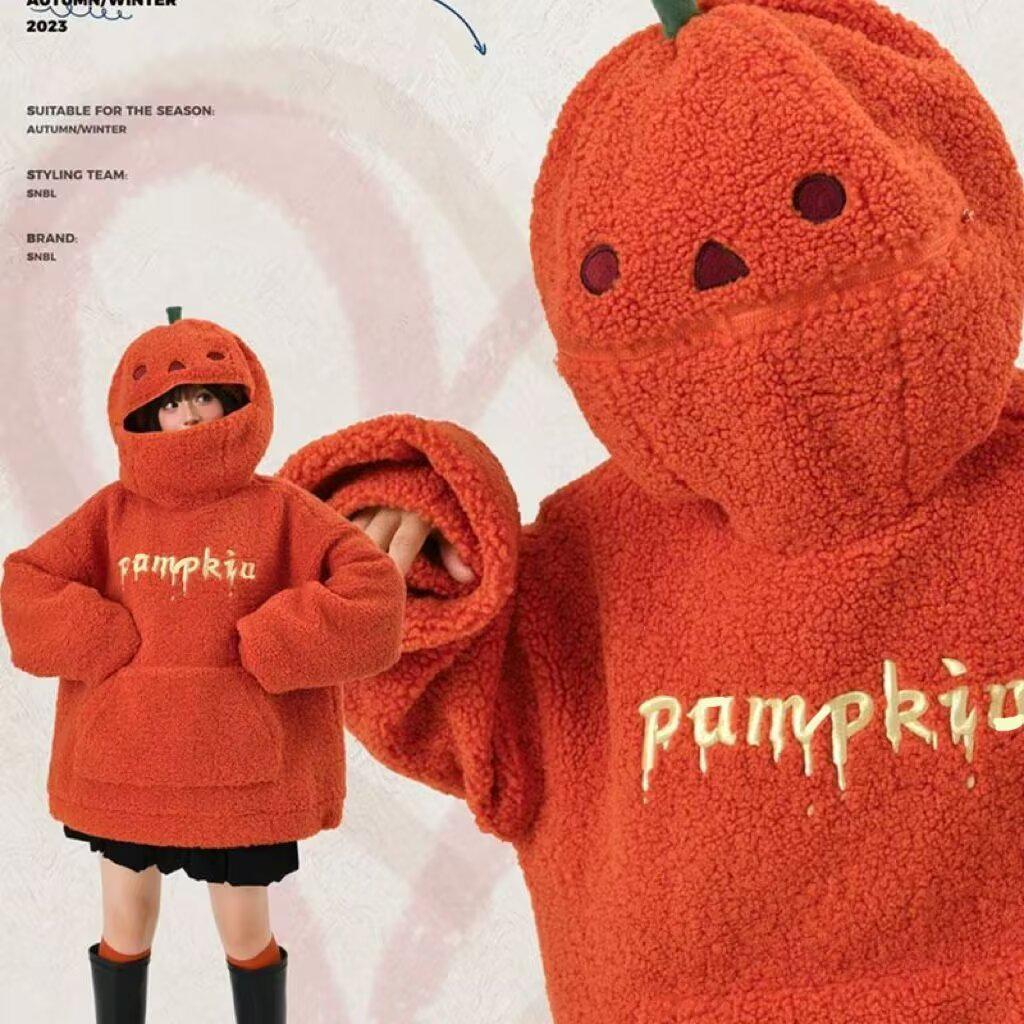 Толстовка с капюшоном в стиле ретро 2024 года с тыквой: Унисекс Осень/Зима Молодежный Стиль