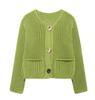 Женская вязаная кофта-свитер - 15 цветов, осень/зима, европейский и американский стиль, короткая с большими карманами, застежка на три пуговицы (2024). — купить товар онлайн с бесплатной доставкой по всему миру!