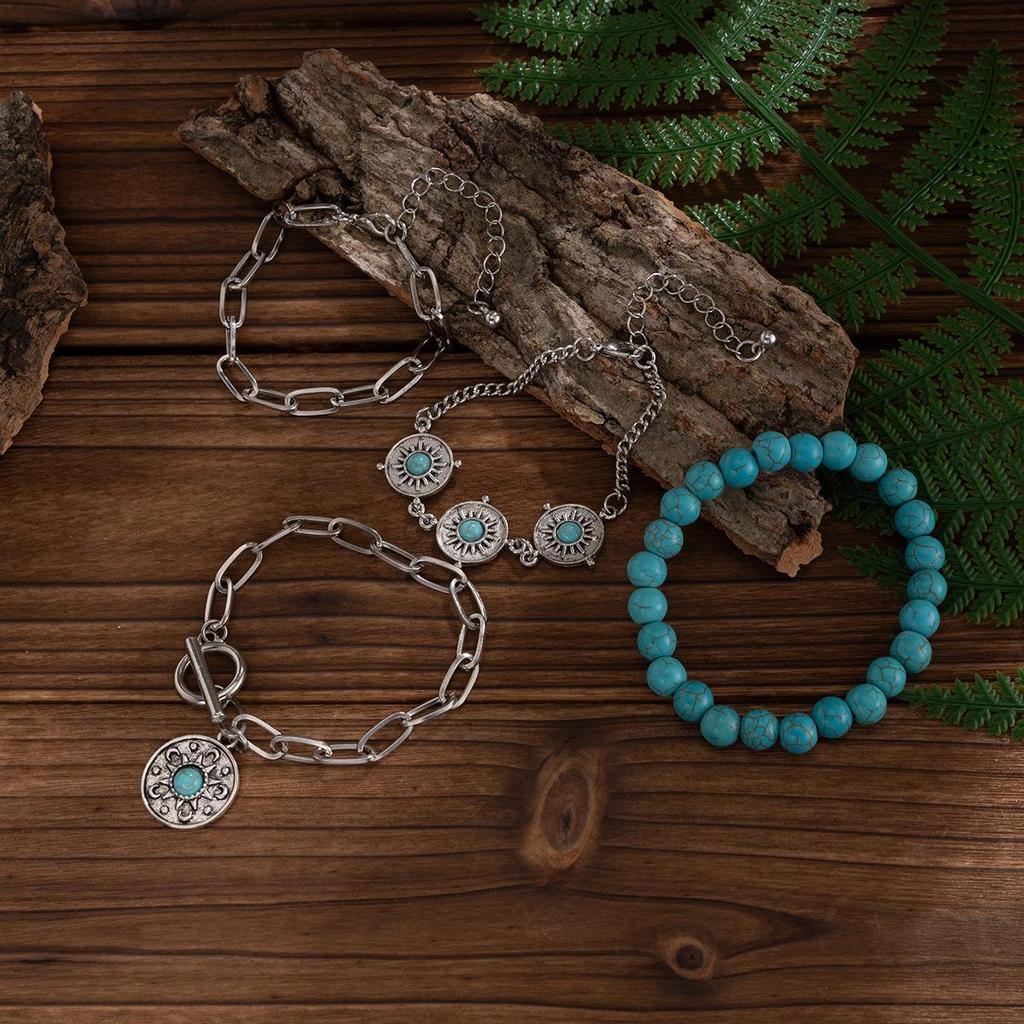 Комплект из 4 браслетов с подвесками в виде ковбойской шляпы бирюзового цвета: Персонализированные многоэлементные ювелирные изделия