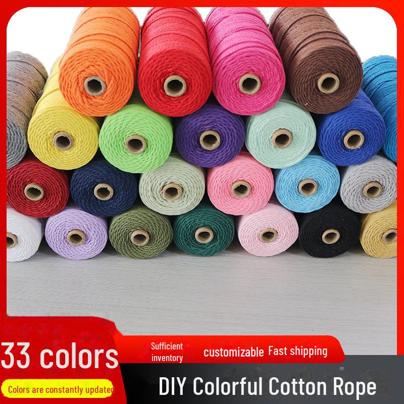 Плетеная веревка из цветного хлопка толщиной 2 мм для поделок, переплета и гобеленовых проектов