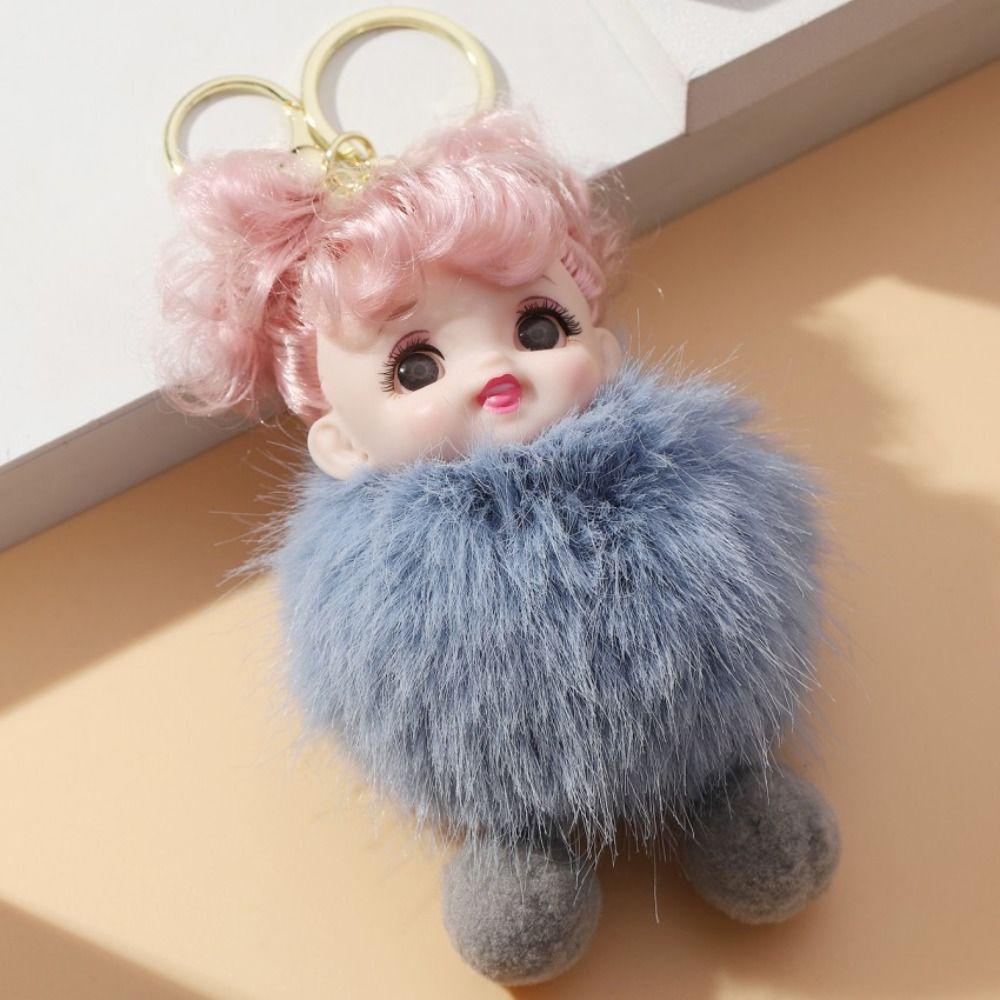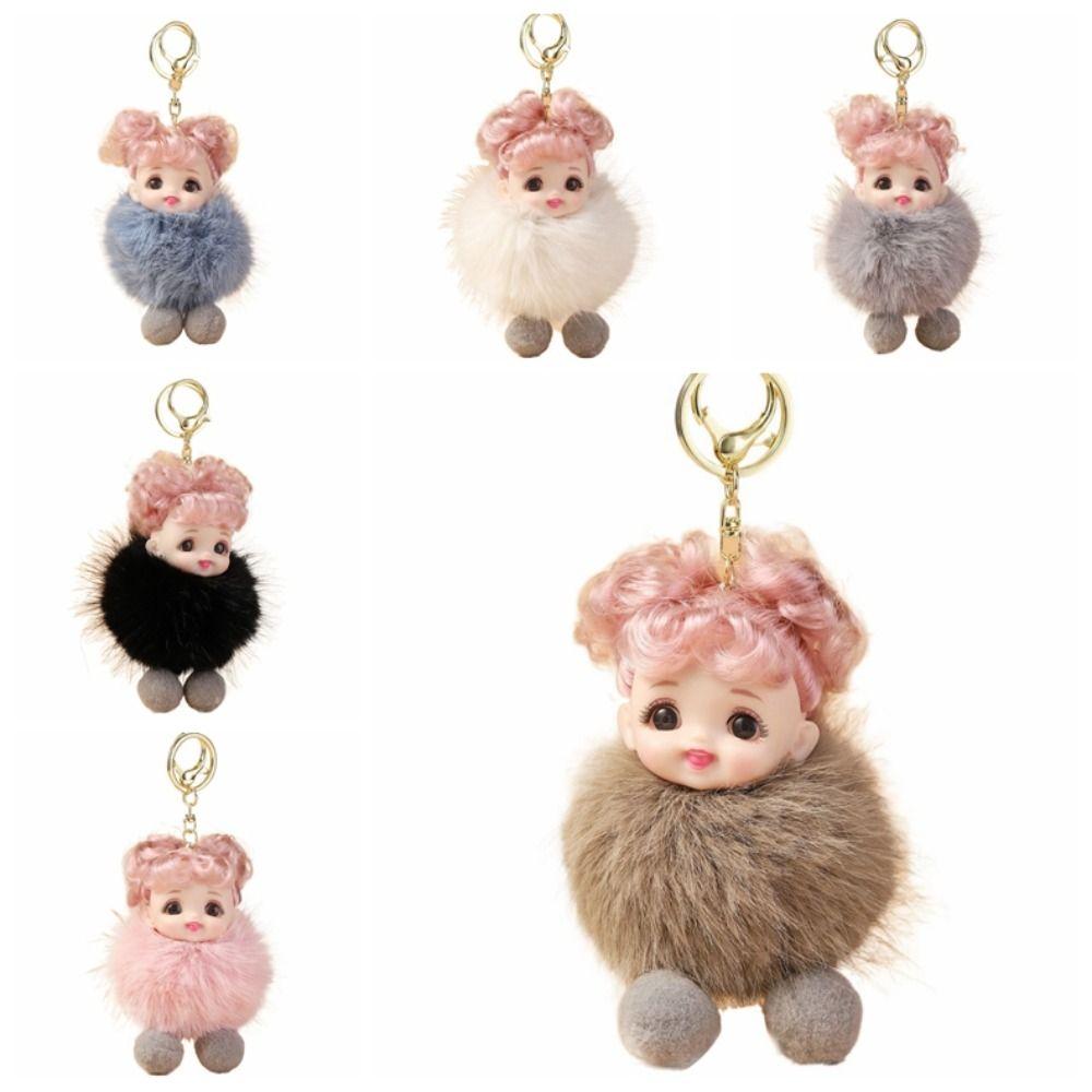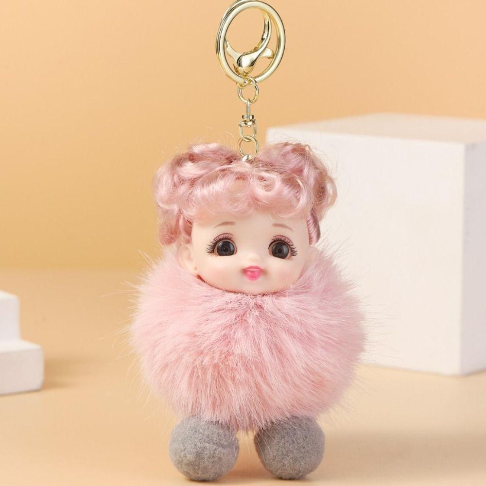 Baby Doll Pompom Baby Keychain Pink Hair Car Key Ring Fashion Fluffy Doll Keyring Children