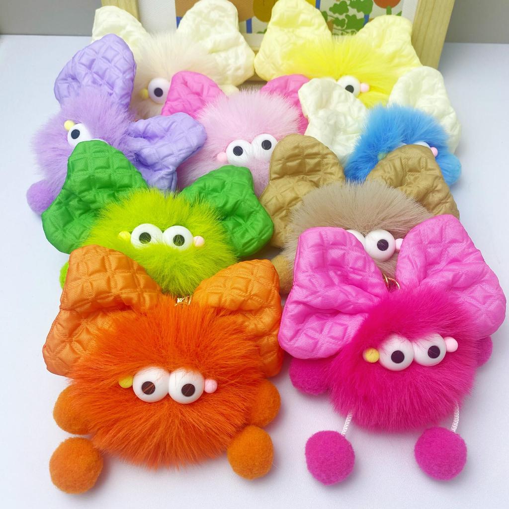 Брелок для ключей с плюшевым кроликом Рексом, бантом и кулоном в виде угольного шарика — милый подарочный аксессуар для пары