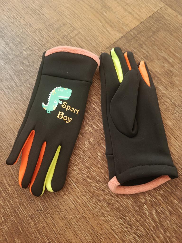 Детские красочные ветрозащитные перчатки с принтом динозавров и светящимся в темноте элементом для активного отдыха