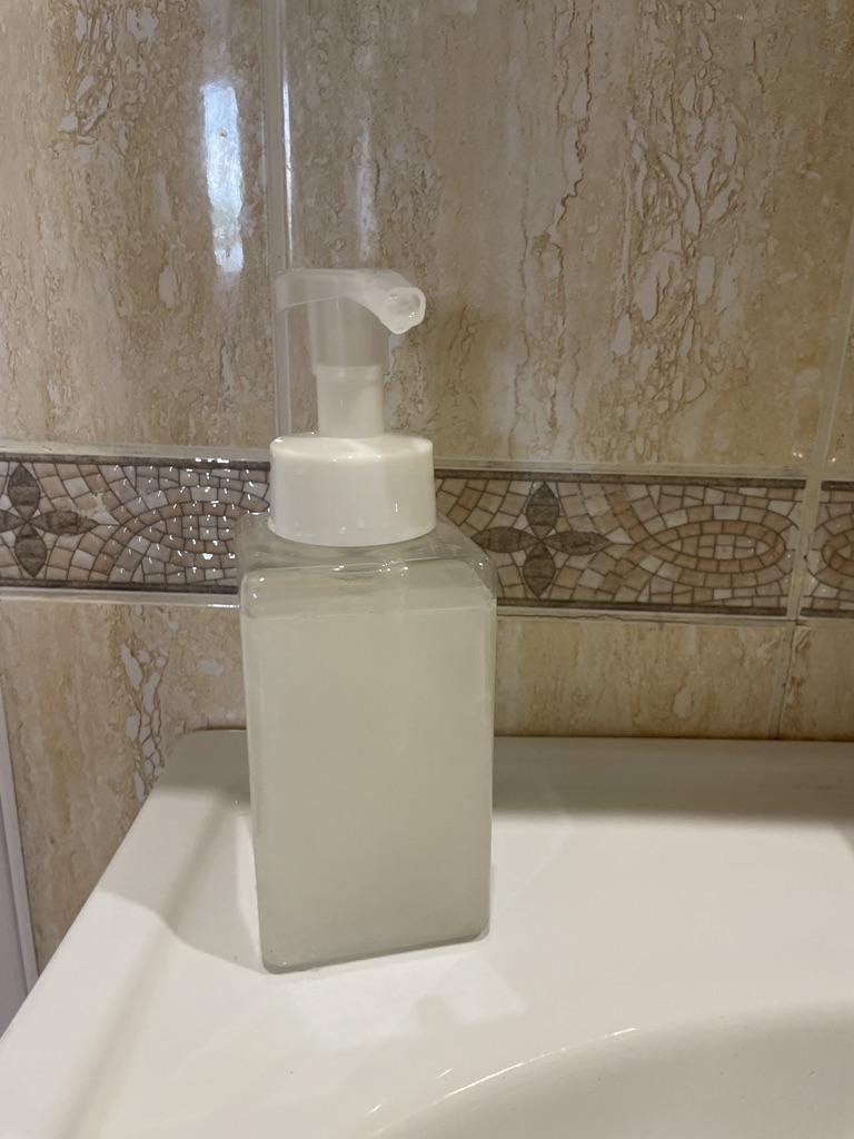 Пенка плохо образуется, может мыло не то. Будем пробовать. А сама емкость хорошая. Надо 70% воды и 30% мыла, тогда будет пена получаться.