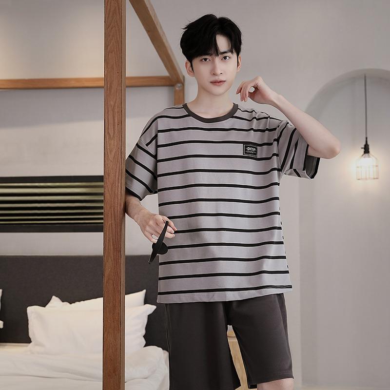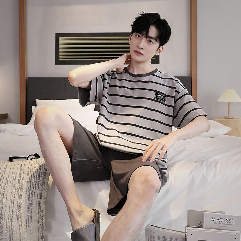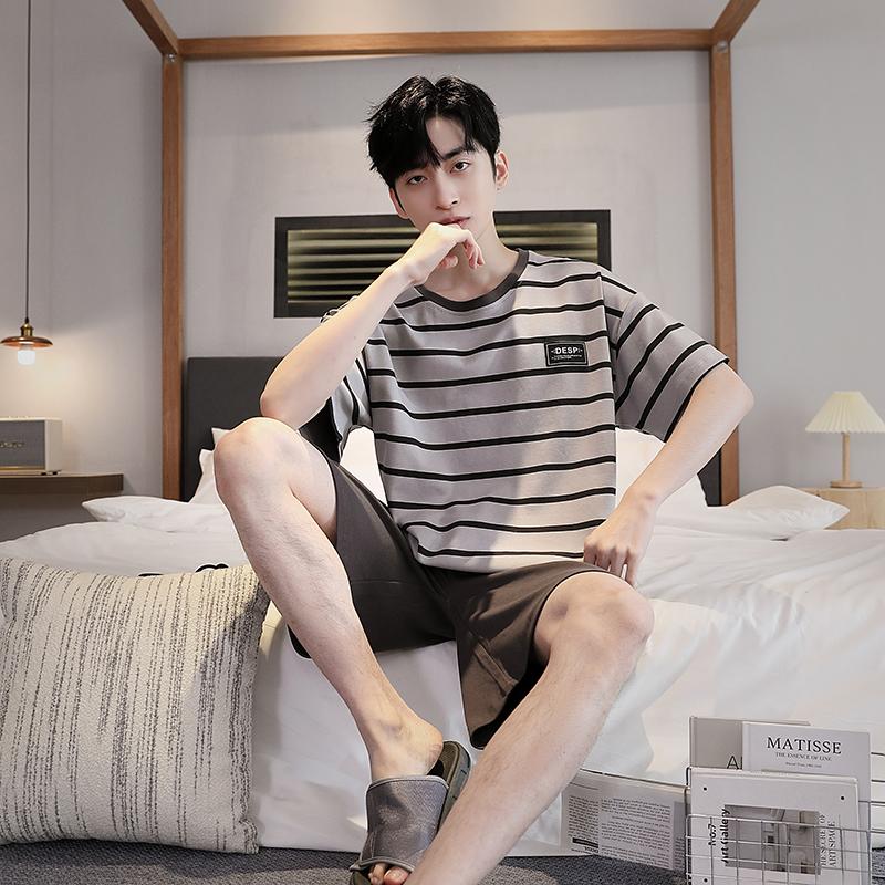 Мужской пижамный комплект Топы с коротким рукавом и шорты Одежда для сна Домашняя одежда Студенты Двойка Полосатый Молодежный Ночная одежда y2k Домашняя одежда мужская