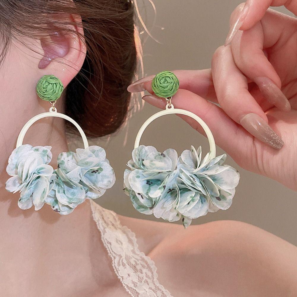Sweet Fabric Flower Eardrop Colorful Exaggerated Earrings Fashion Mesh Flower Earrings Beach