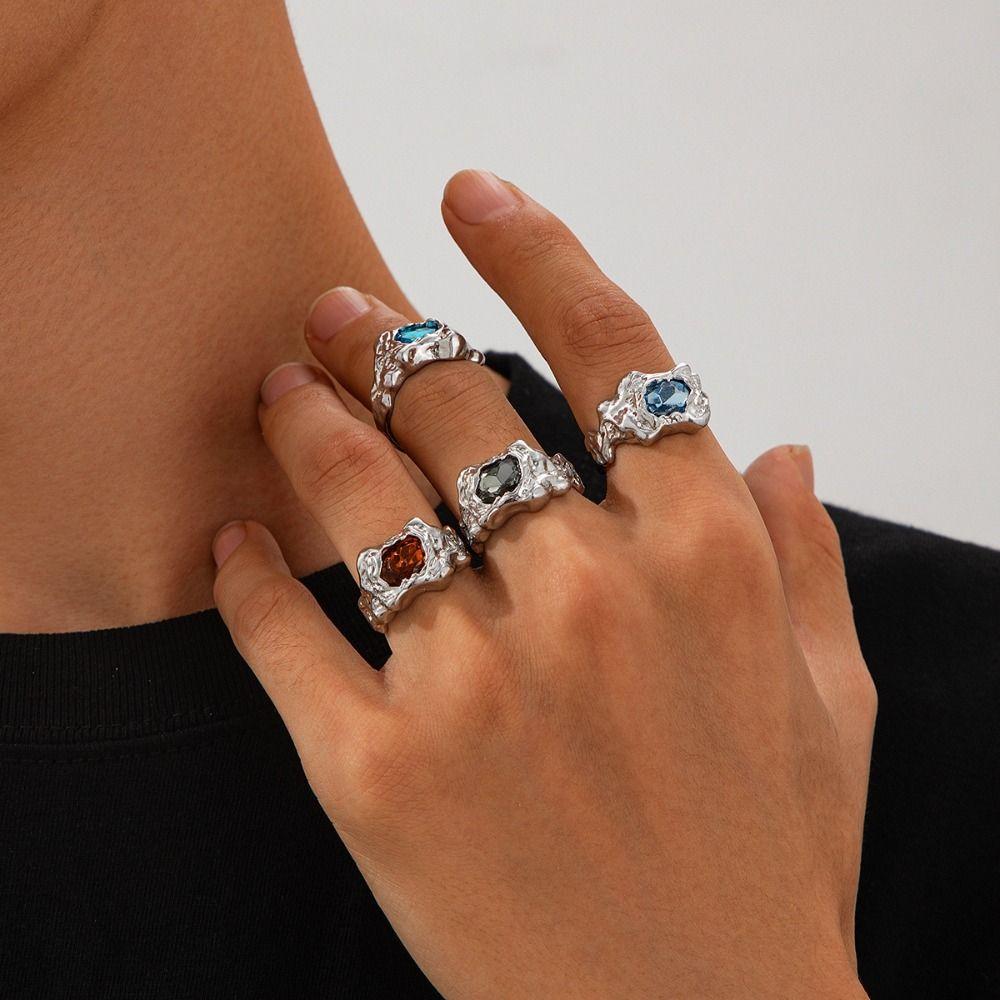 4 шт. Кольца с нерегулярными цветными драгоценными камнями, золотые, серебряные, преувеличенные кольца, классные открытые кольца со стразами для мужчин — купить товар онлайн с бесплатной доставкой до всему миру!