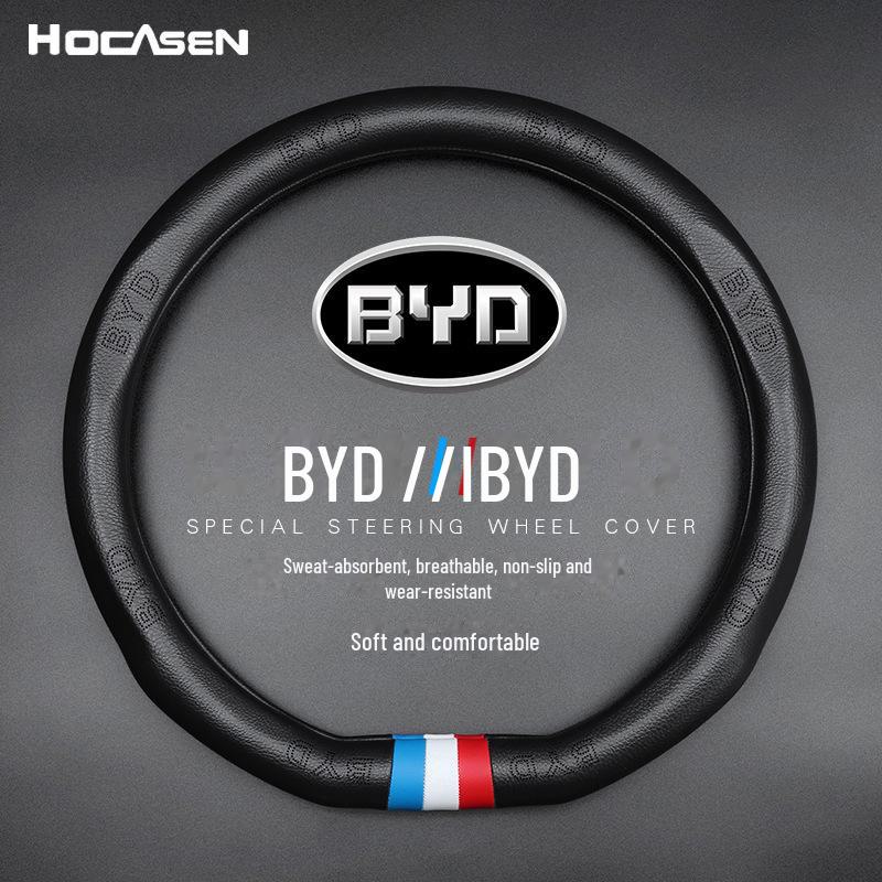 Кожаная оплетка на руль для моделей BYD Song Pro, Song MAX, Tang, Qin Pro, Han, Yuan, Song PLUS