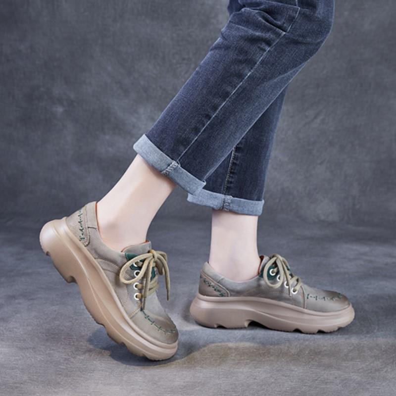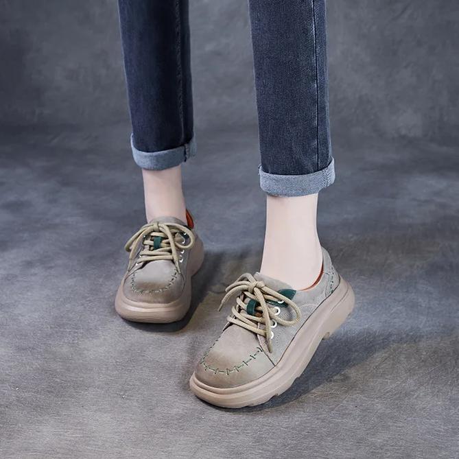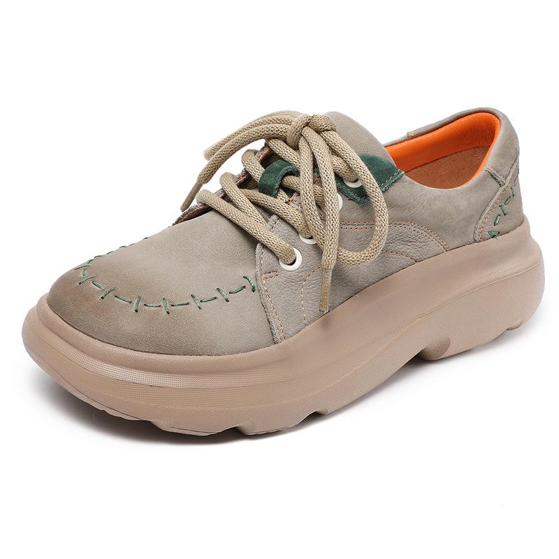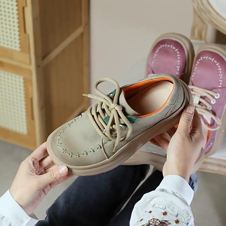 Johnature Женская обувь из натуральной кожи в стиле ретро, повседневные туфли на плоской подошве со шнуровкой, с ручной строчкой