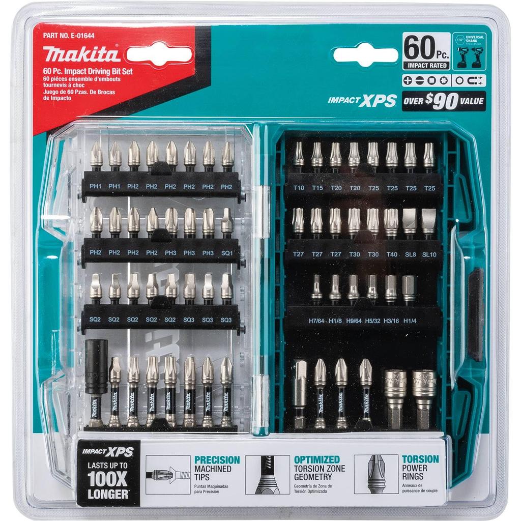 Номер модели: Е-01644 (Стандарт США) Оригинальный набор бит Makita из 60 предметов.. Это набор различных насадок, бит и т. д.. Поставляется с прочным и компактным футляром для хранения.. (СОДЕРЖАНИЕ) Магнитные гайковерты 1-3/4"(2), Держатель бит-вставок 2-3/8"(1), Усиление Магн.(1), 2-дюймовые биты(10), Адаптер разъема 1/4"(1), 1" Вставные биты(45)=Ф(2),PH2(9),PH3(3),SQ1(1),КВ2(5),кв3(3),T10(1),Т15(1),Т20(2),Т25(4),Т 27(3),Т30(2),Т40(1),СЛ8(1),СЛ10(1),Н7/64(1),Н1/8(1),Н9/64(1),Н5/32(1),Н3/16(1),В1/4(1)