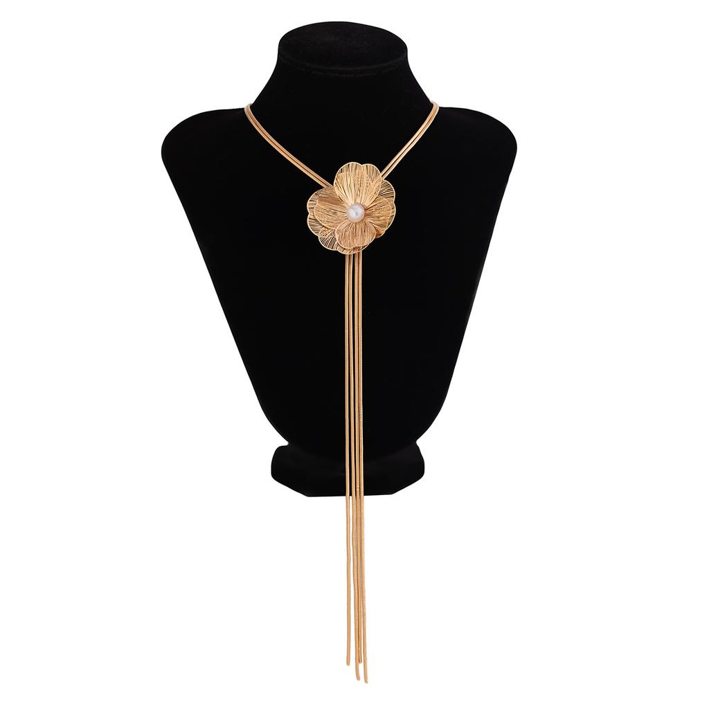 Модное жемчужное ожерелье с маленьким цветком, круглая змеевидная цепочка, премиальное металлическое ощущение, кисточка, длинная цепочка, цепочка-косточка, дизайнерское, для поездок, женское ожерелье