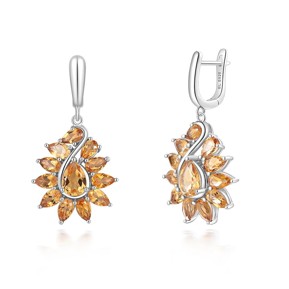 Серьги из стерлингового серебра 925 пробы с натуральным цитрином и драгоценными камнями. Изящные ювелирные украшения. Подарок на годовщину и банкет для женщин.