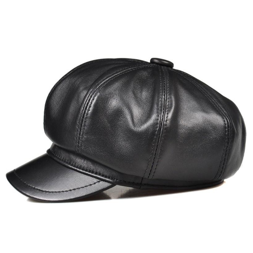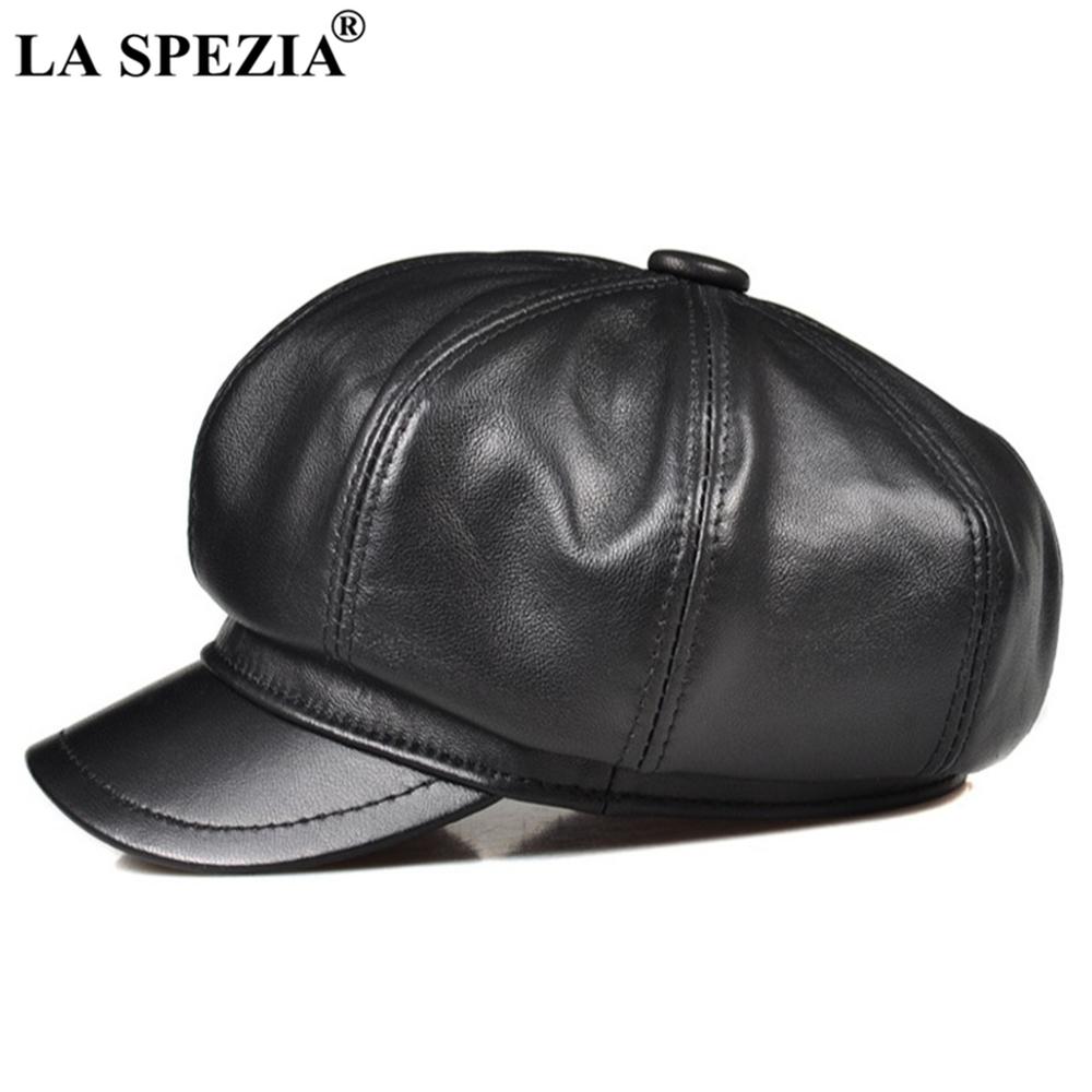 ЛА СПЕЦИЯ Натуральная Кожа Мужская Женская Кепка Газетчика Овчина Мужской Берет Винтаж Высокое Качество Мужская Женская Черная Восьмиугольная Кепка