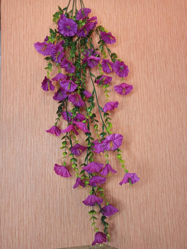 Подвесная искусственная веточка петуньи для декора На странице продавца цветы предоставлены в разных цветах, у меня красные Длина веточки - 45 см. Изготовлено из пластика и ткани Веточка соответствует описанию продавца. Цветочки брала для украшения, а также для фото. Смотрится очень красиво. Покупкой осталась довольна. Рекомендую товар и продавца.