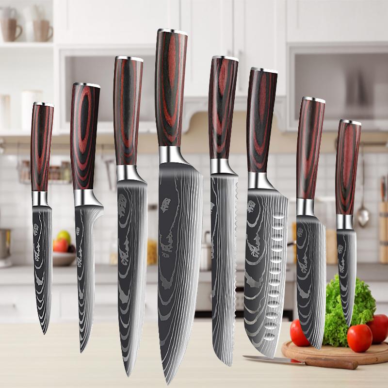 Набор из 8 кухонных ножей из нержавеющей стали с деревянной ручкой, набор острых кухонных ножей для резки мяса, обвалки, овощей и фруктов