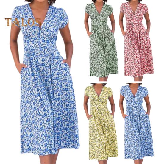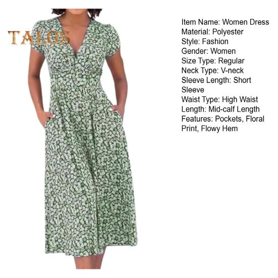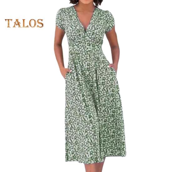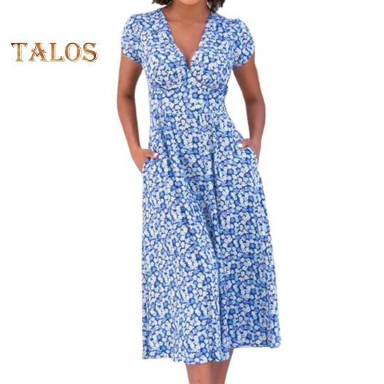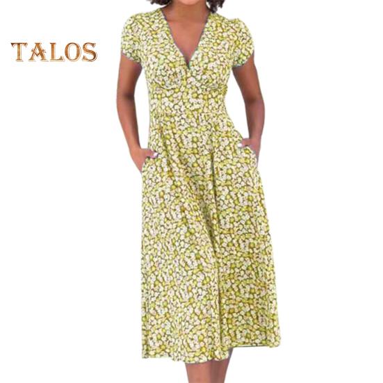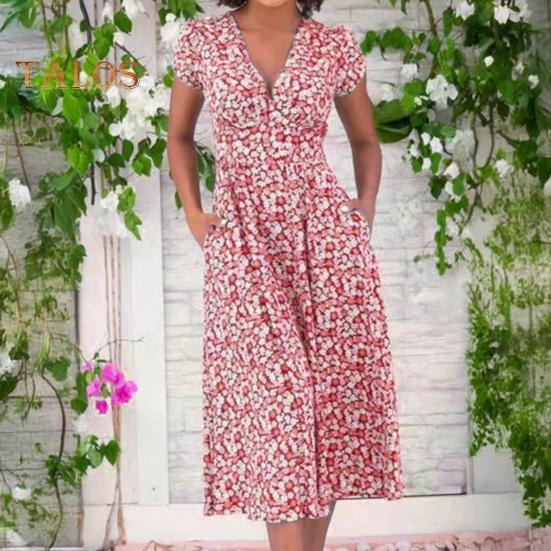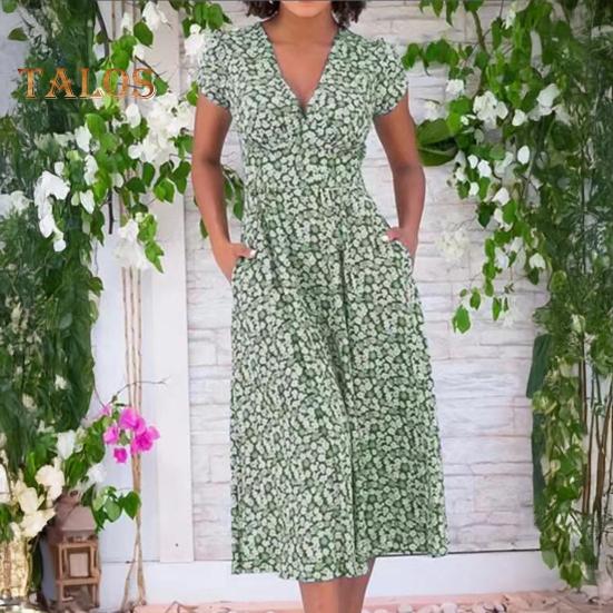 Это платье с привлекательным V-образным вырезом и облегающим кроем на талии подчеркнет вашу фигуру благодаря А-образному крою.. Печатный рисунок добавляет элегантности, что делает его идеальным для различных случаев: повседневного ношения, отпуска, похода в клуб и коктейльных вечеринок..