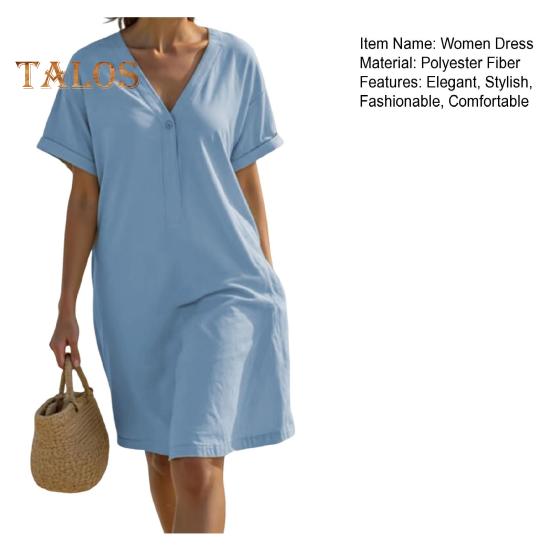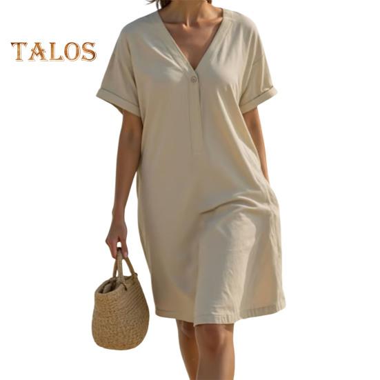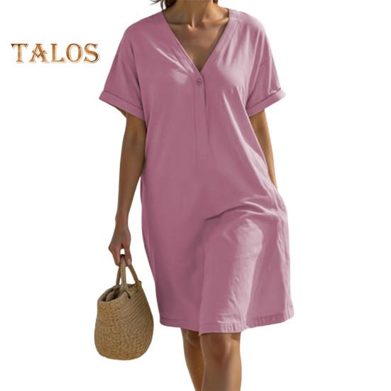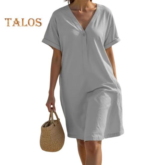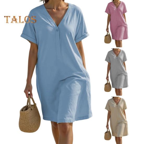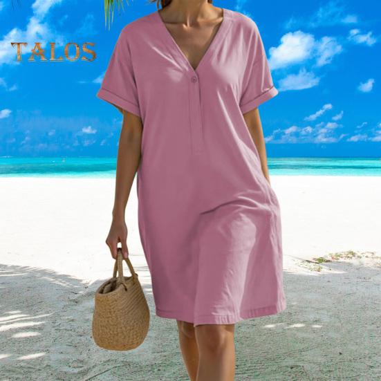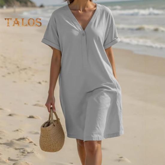 Женское повседневное платье-футболка с V-образным вырезом и коротким рукавом, свободное платье, летний пляжный сарафан для путешествий и отпуска
