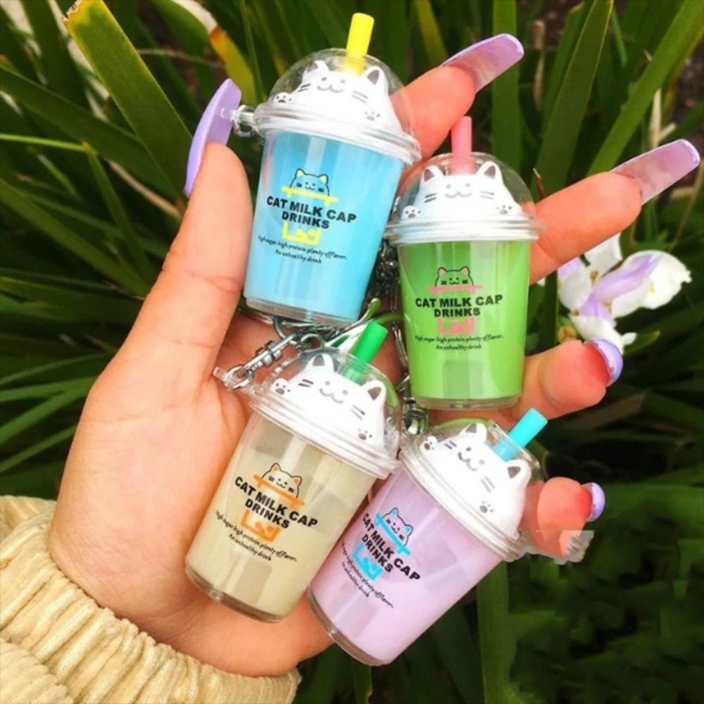 Брелок для ключей с жидким маслом, плавающий брелок для безалкогольных напитков, брелок для ключей с жемчужинами в виде чашки с молоком и чашкой чая