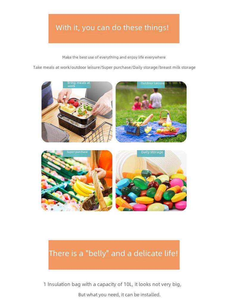 Портативная вместительная сумка для ланча из ткани Оксфорд с изоляцией для студентов и пикников