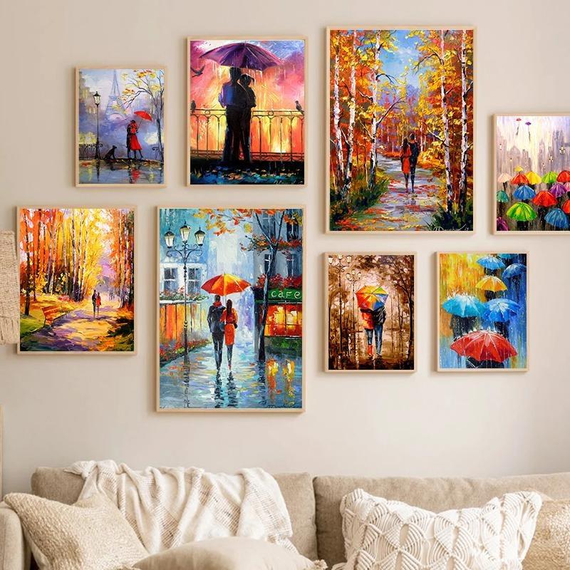Скандинавский осенний дождливый пейзаж постер, холст, картина маслом для влюбленных, наружная настенная живопись для современной гостиной