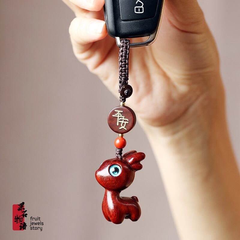 Брелок и ремешок для телефона в виде мультяшного оленя из сандалового дерева - Унисекс плетеный орнамент