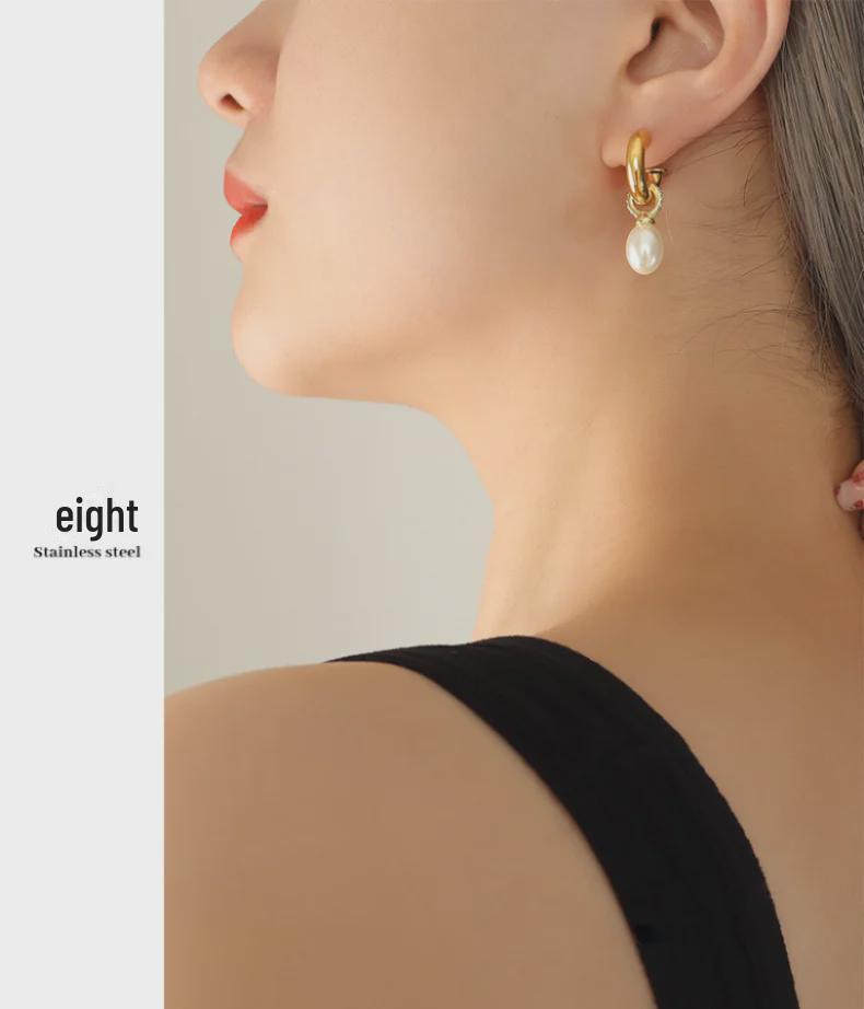 Серьги-кольца из титана с барочным жемчугом для девочек - Не тускнеющие, в европейском и американском стиле