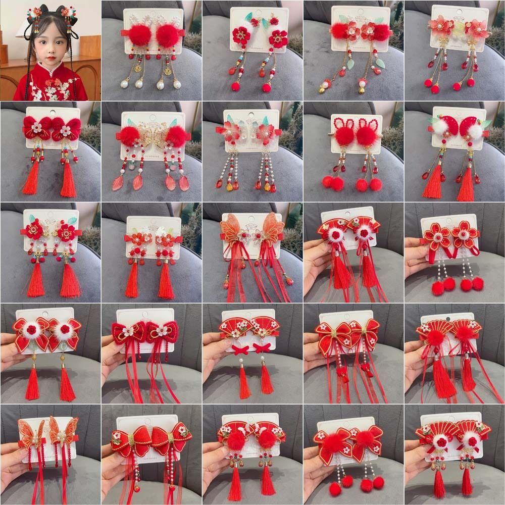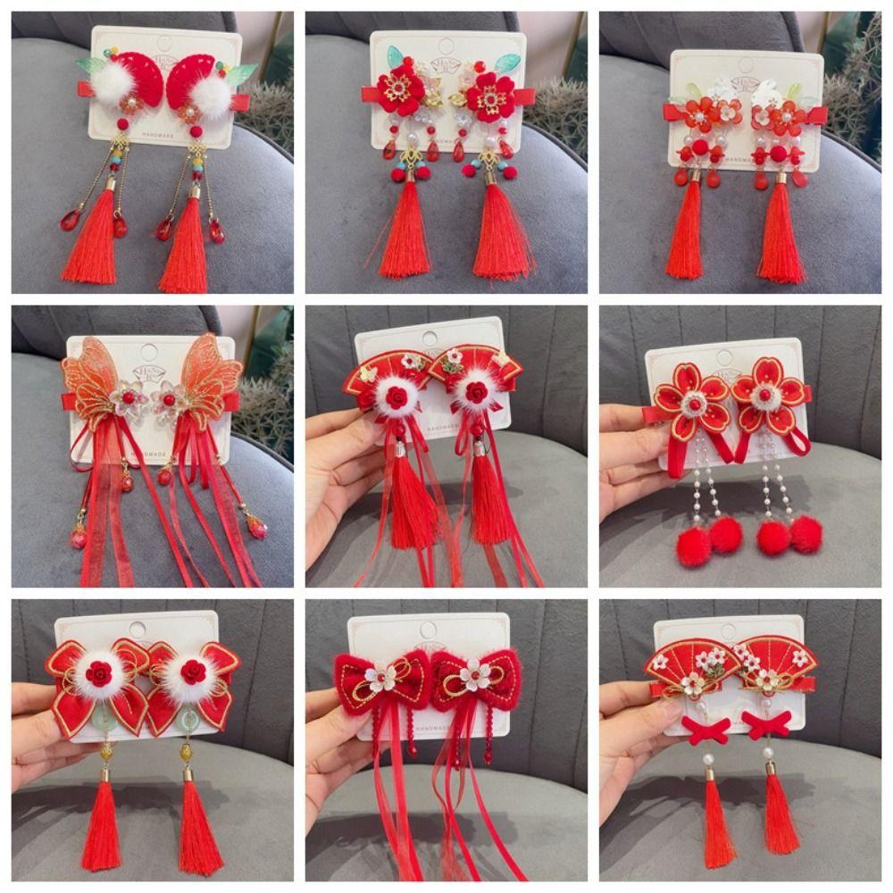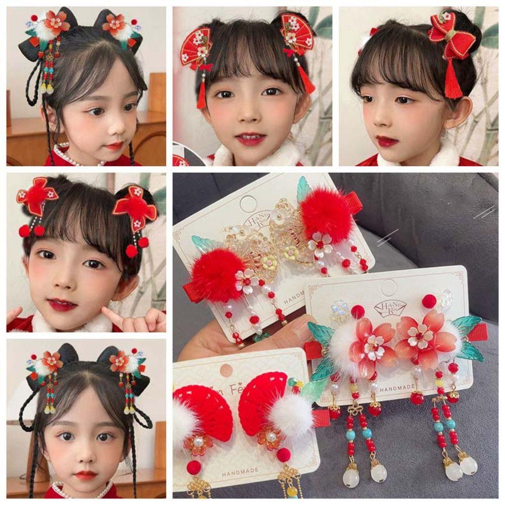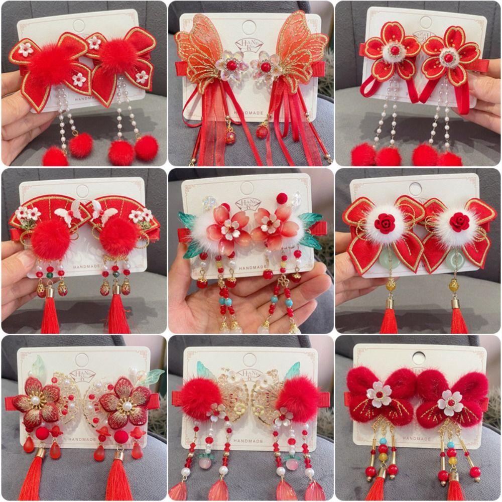 1 пара веера ханьфу, цветок, заколка для волос, бабочка, жемчуг, кисточка, заколка для волос для женщин/детей