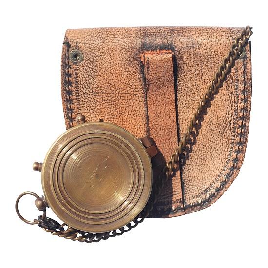 [Компас ручной работы] Кожаный чехол ручной работы и латунный компас с цепочкой