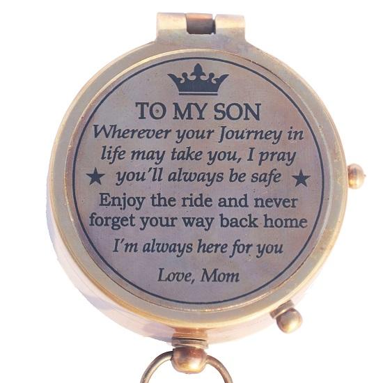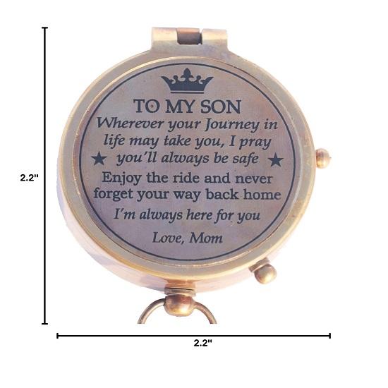 Латунный компас ручной работы для мужчин – Карманный компас с кожаным чехлом, Религиозный подарок на Причастие, Крещение (Моему сыну, Люблю, Мама)