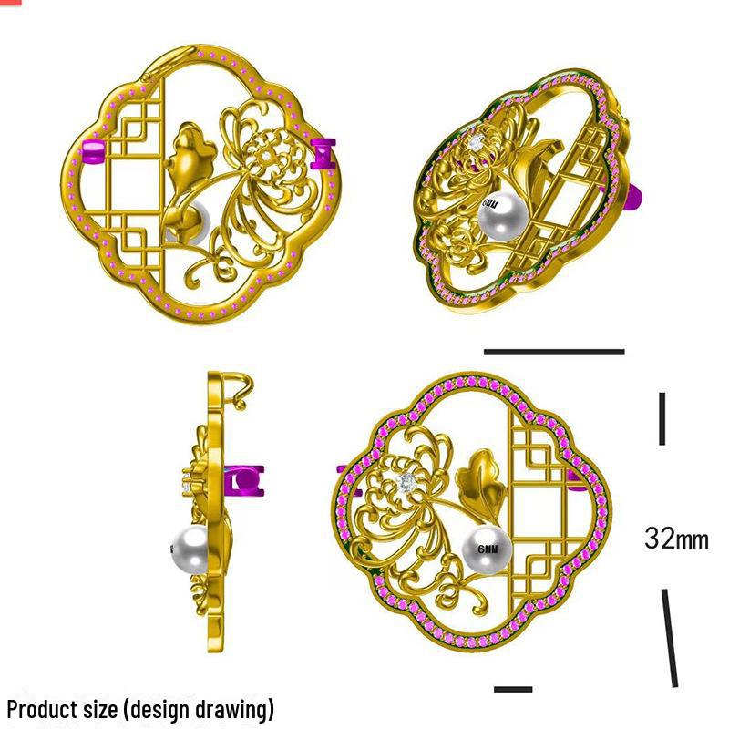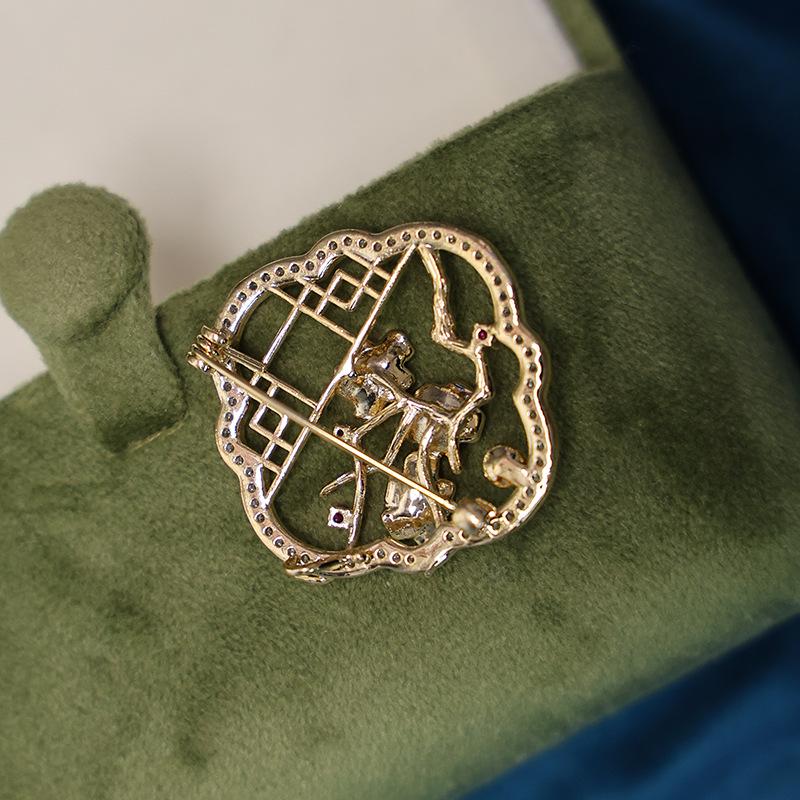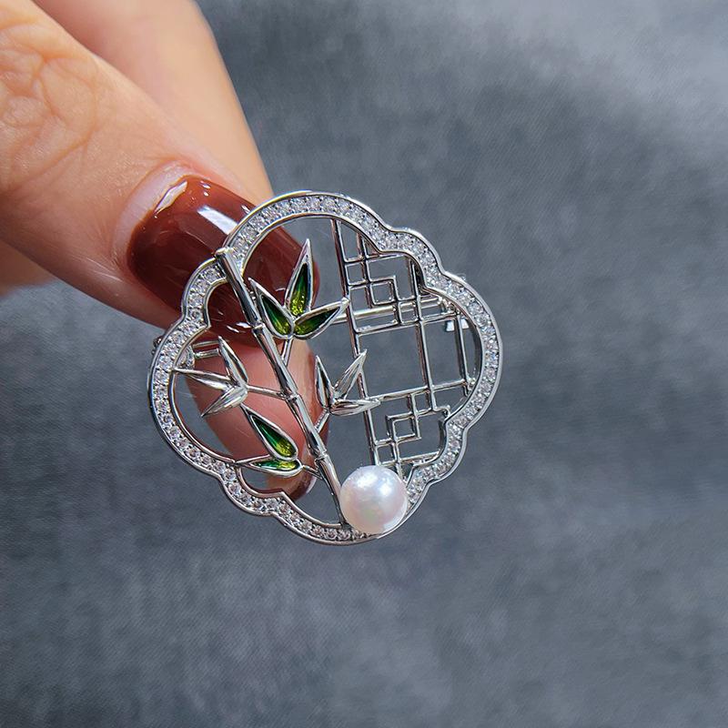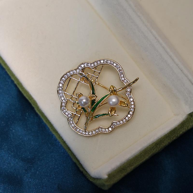Медная брошь в античном стиле: Дизайн с изображением сливы, орхидеи, бамбука и хризантемы с корсажем из циркония и жемчуга.