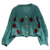 2024 Корейский вязаный кардиган с вышитым 3D-цветочным узором «Клубника» – Толстая шерстяная куртка с длинными рукавами для женщин