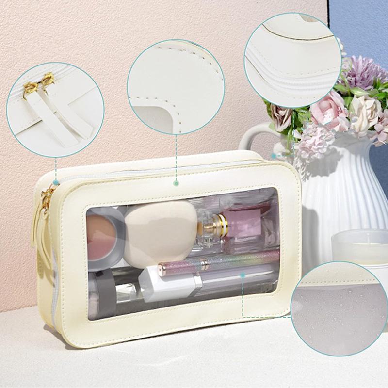 Женская косметичка из искусственной кожи, дорожная косметичка, прозрачная косметичка, органайзер для средств по уходу за кожей, портативный размер, хранение туалетных принадлежностей