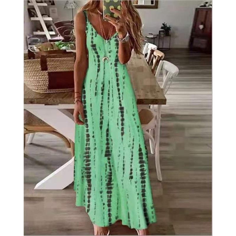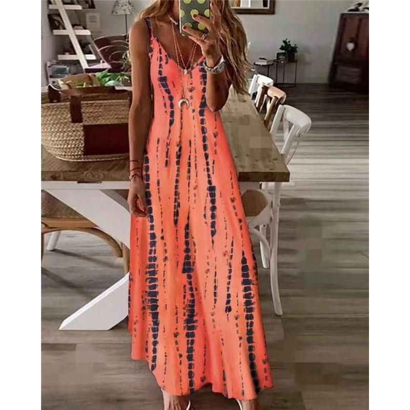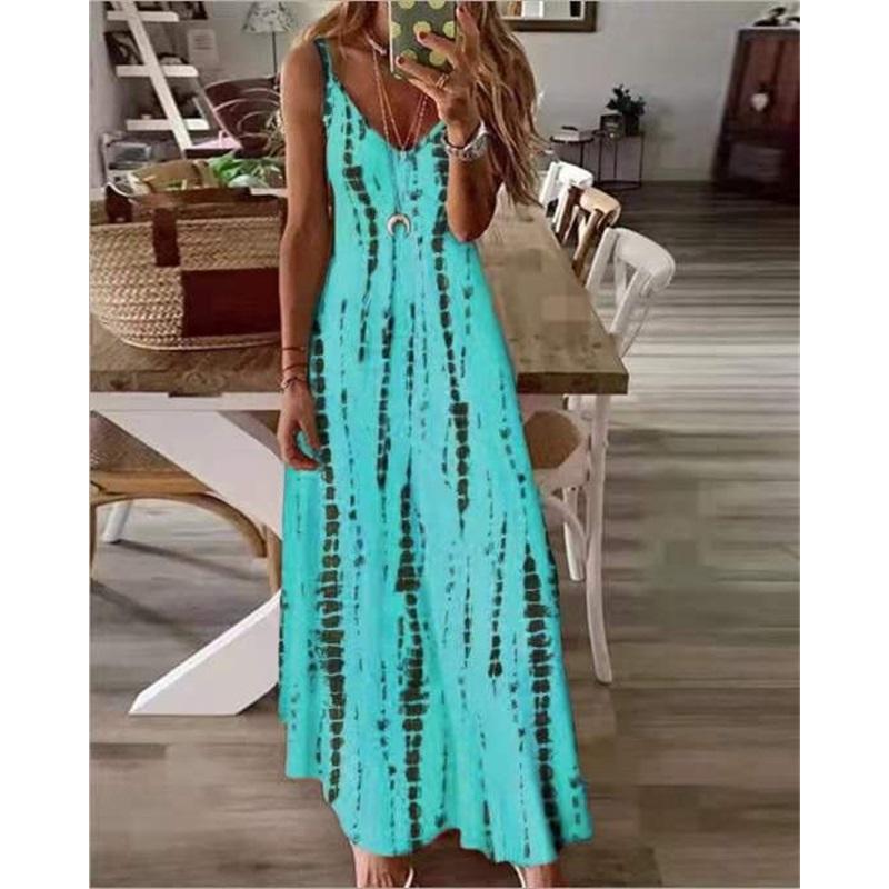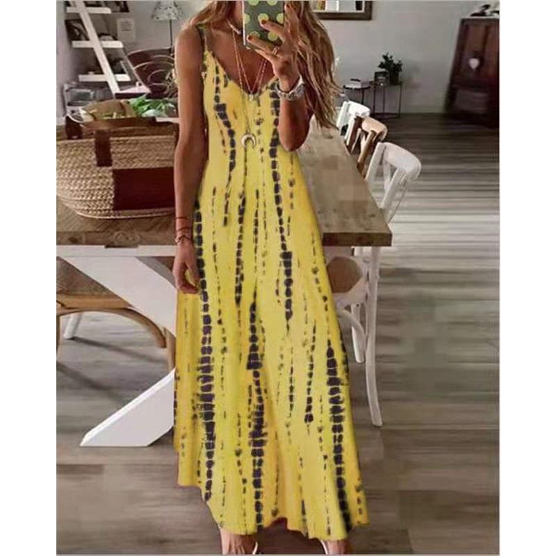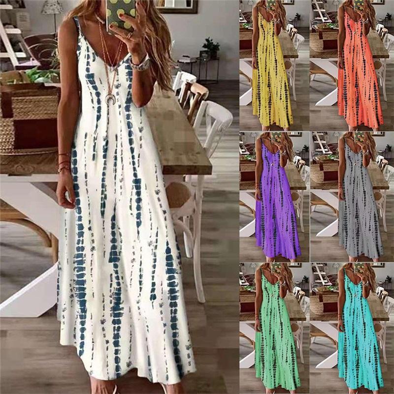 Женское платье с принтом тай-дай, V-образным вырезом, большим качелем и высокой талией