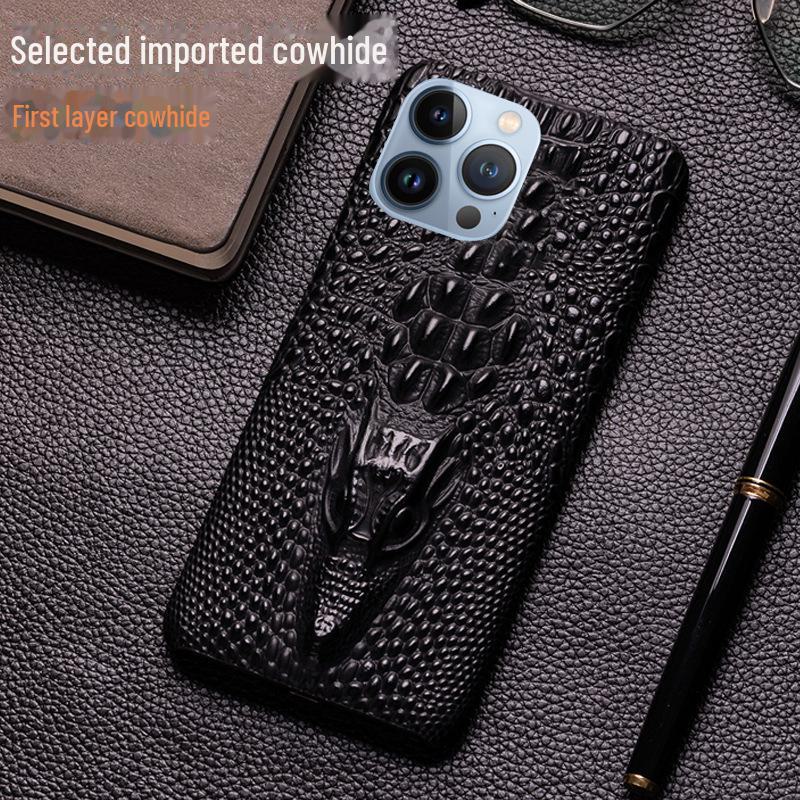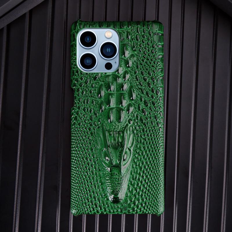 Чехол для iPhone 11/13 Pro Max и Apple 14: 3D Голова крокодила Натуральная коровья кожа