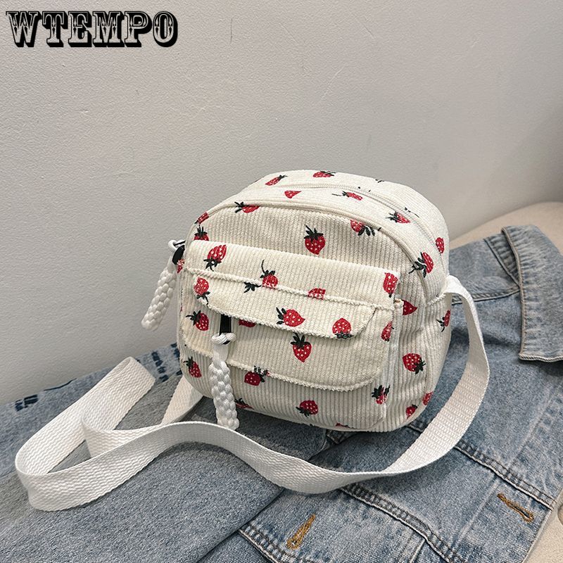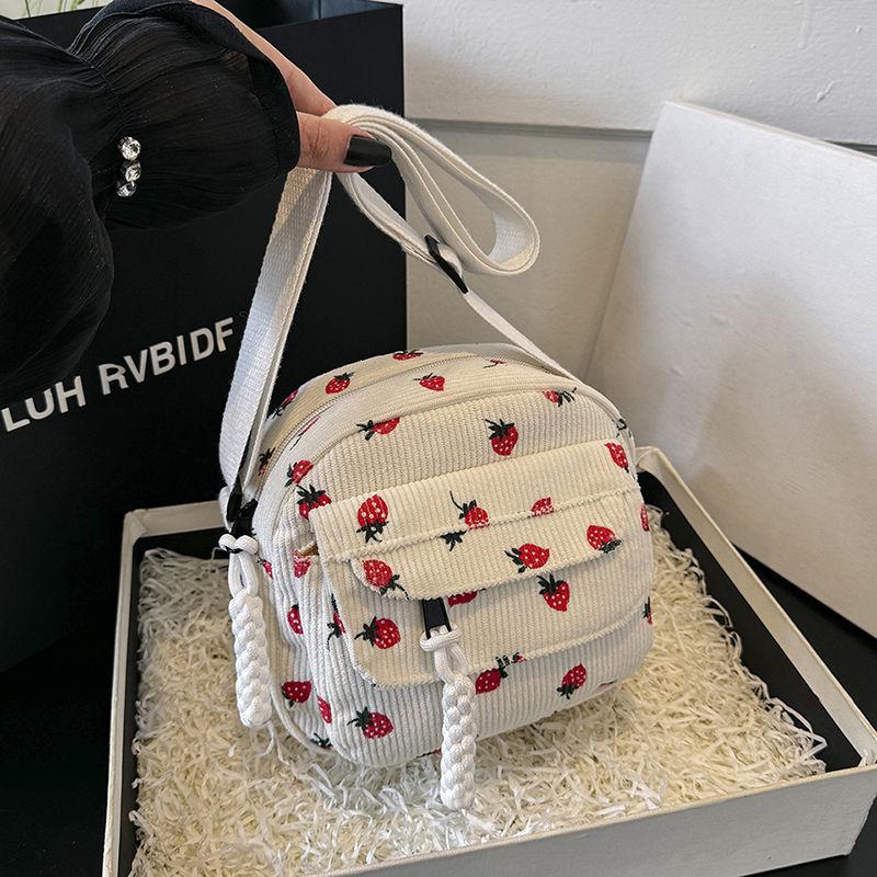 Летняя повседневная универсальная сумка для телефона из холста с принтом клубники, сумка через плечо на одно плечо