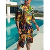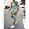 2025 Летний спортивный комплект из 2 предметов для мужчин, футболка с короткими рукавами и принтом в виде цветных блоков, шорты, комплект для бега, для улицы, для мужчин, светлый