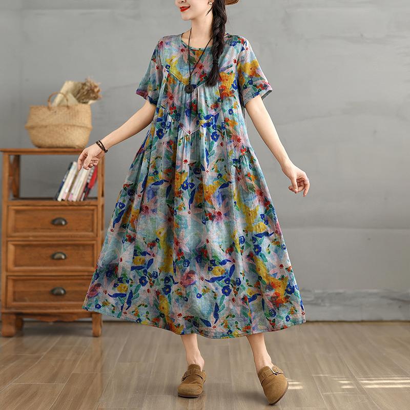 DIMANAF Women 2025 Summer Plus Size Vintage Floral Printing Dress Loose Casual Dress Basic Short Sleeve Long Dress — купить товар онлайн с бесплатной доставкой по всему миру!