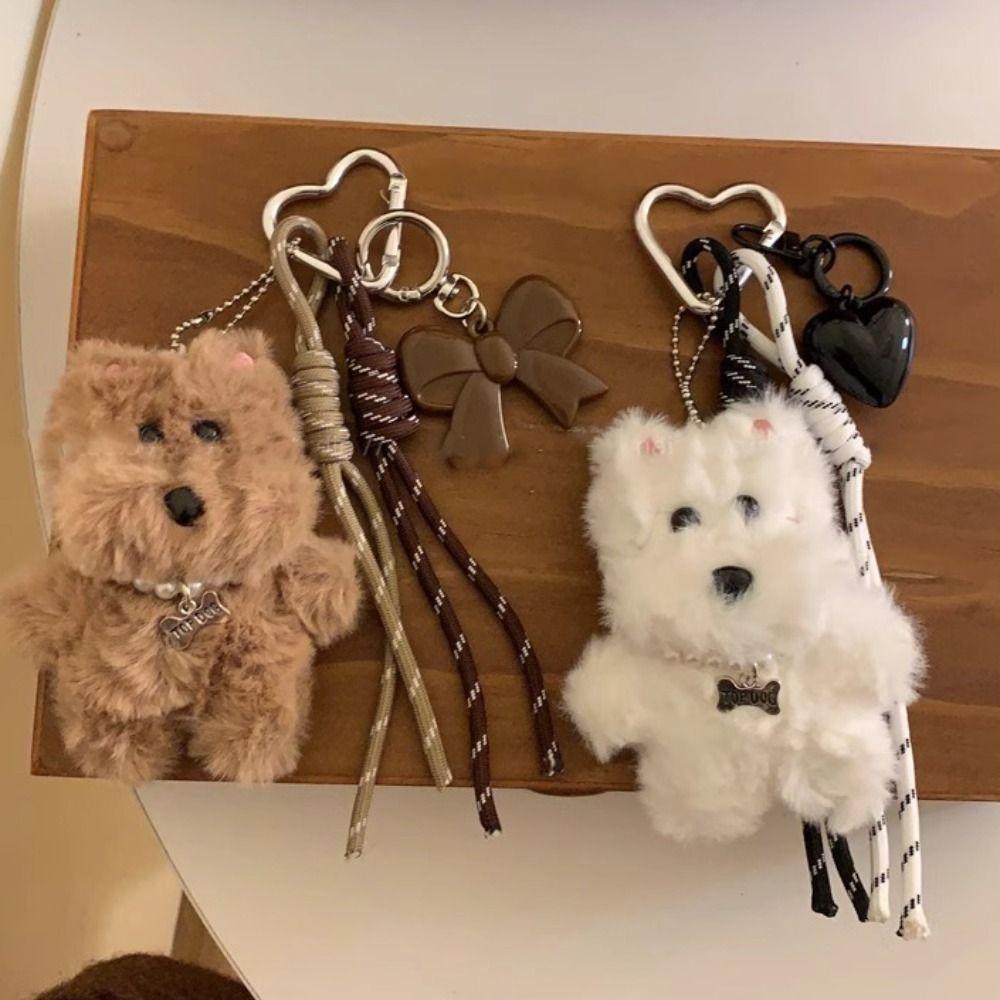 Heart Plush Dog Keychain Cartoon Plush Dolls Soft Car Keyring Friend