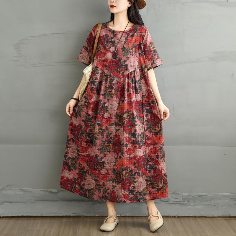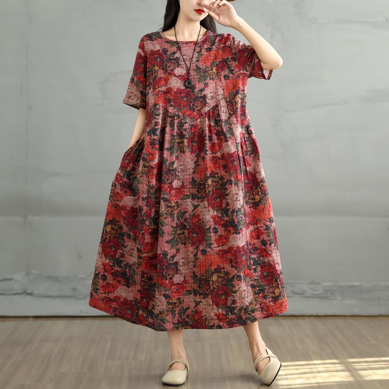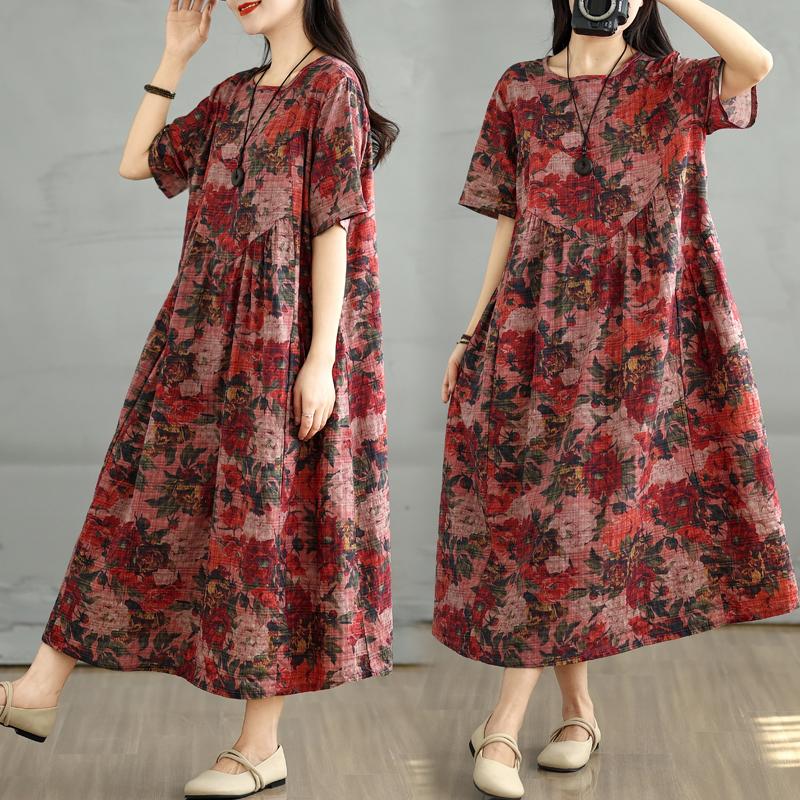 DIMANAF 2025 Летнее платье больших размеров Женское Повседневное Льняное Винтажное Платье-рубашка Свободное Базовое Платье с принтом