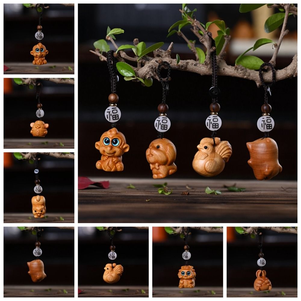 Chinese Zodiac Carving Twelve Zodiac Keychain Wooden Wood Little Animal Keychain New Year Gift