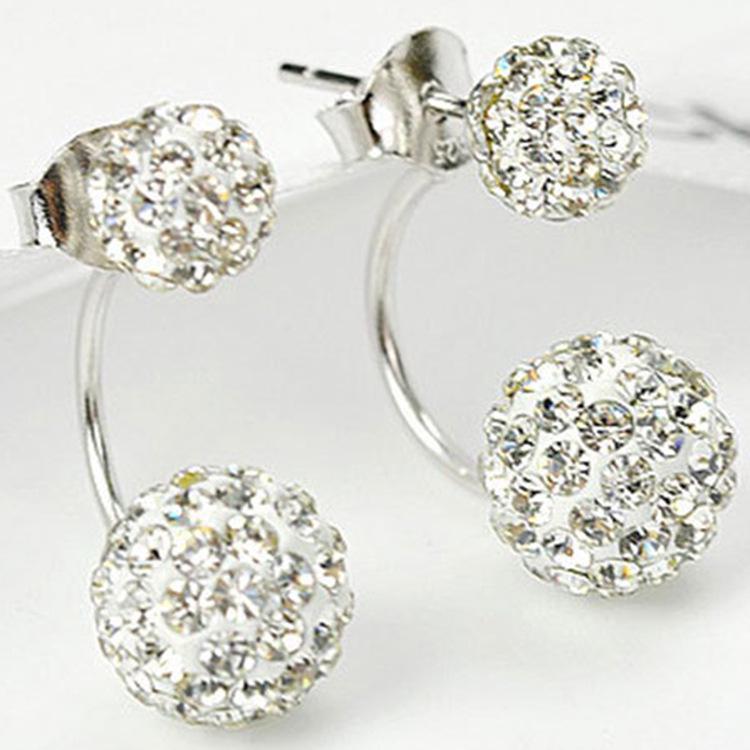Серьги в корейском стиле, посеребренные, с хрустальными шариками и дизайном «Шамбала»