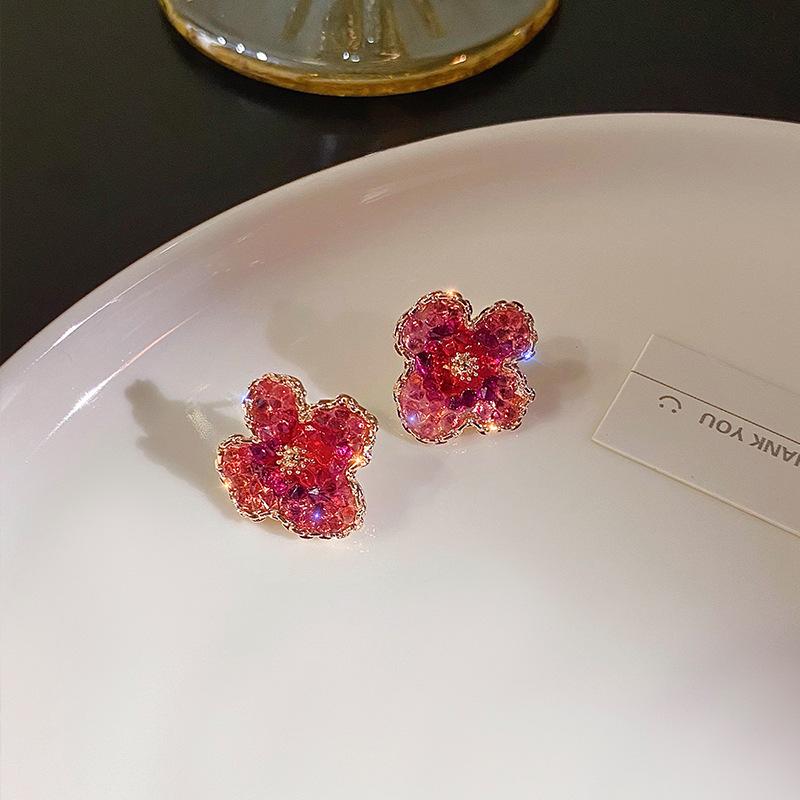 Серьги-цветы с розовыми кристаллами — модный нишевый дизайн 2023 года для женщин, маленькие и изысканные. — купить товар онлайн с бесплатной доставкой по всему миру!