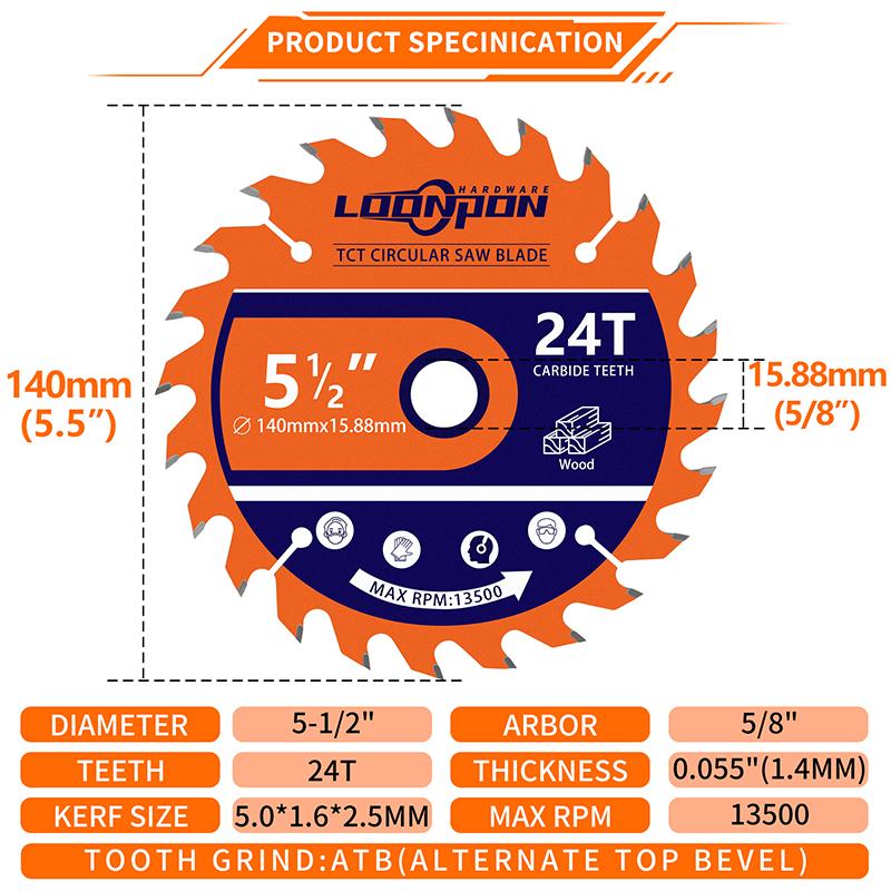 Дисковая пила Loonpon TCT Carbide, дисковые диски для резки дерева, 115, 140, 165, 184, 254 мм, пильное полотно для деревообработки