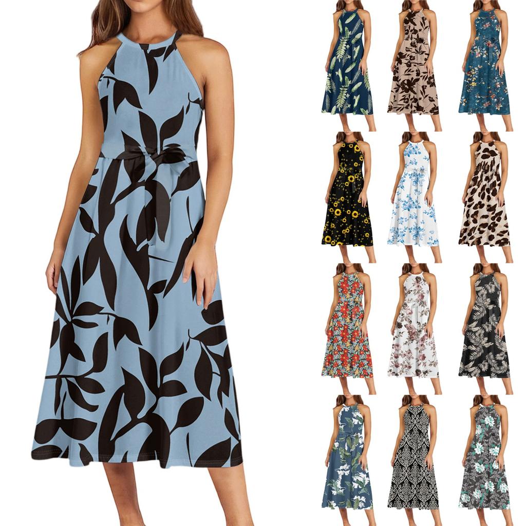 Женское повседневное платье миди с круглым вырезом, классическое, повседневное, без рукавов, свободное платье в стиле бохо с завязками, летний пляжный сарафан — купить товар онлайн с бесплатной доставкой до всему миру!