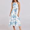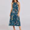 Женское повседневное платье миди с круглым вырезом, классическое, повседневное, без рукавов, свободное платье в стиле бохо с завязками, летний пляжный сарафан