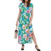 Женское платье макси с цветочным принтом, повседневное платье-рубашка с длинным рукавом и свободным разрезом, праздничное платье с коротким рукавом