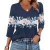 Женская футболка с принтом, рукав 3/4, повседневная мода на выходные, базовый топ с V-образным вырезом